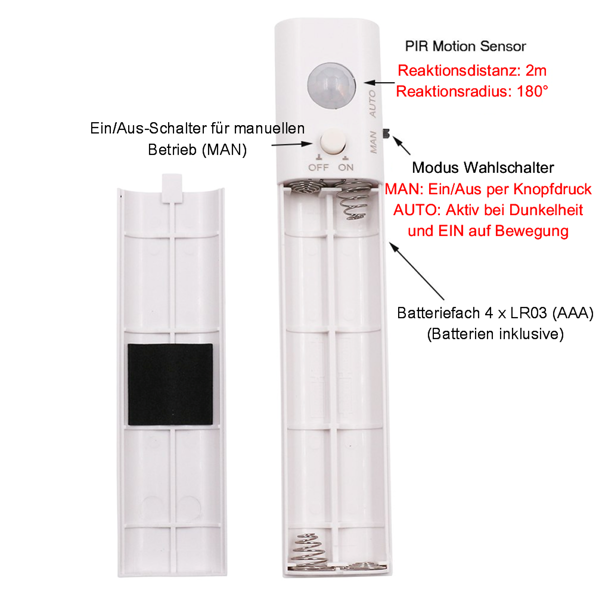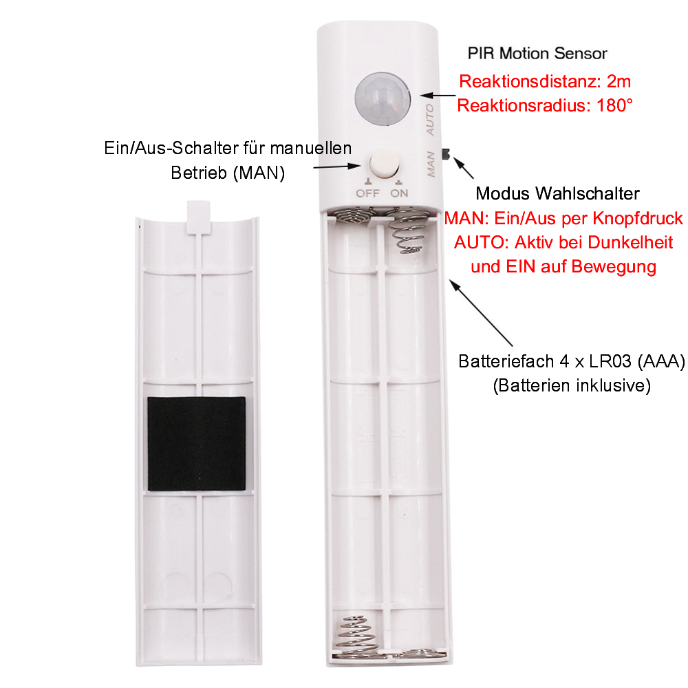 Batteriebetrieben: 4 x AAA (LR03) Batterien (beiliegend/inkl.)