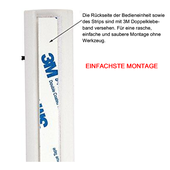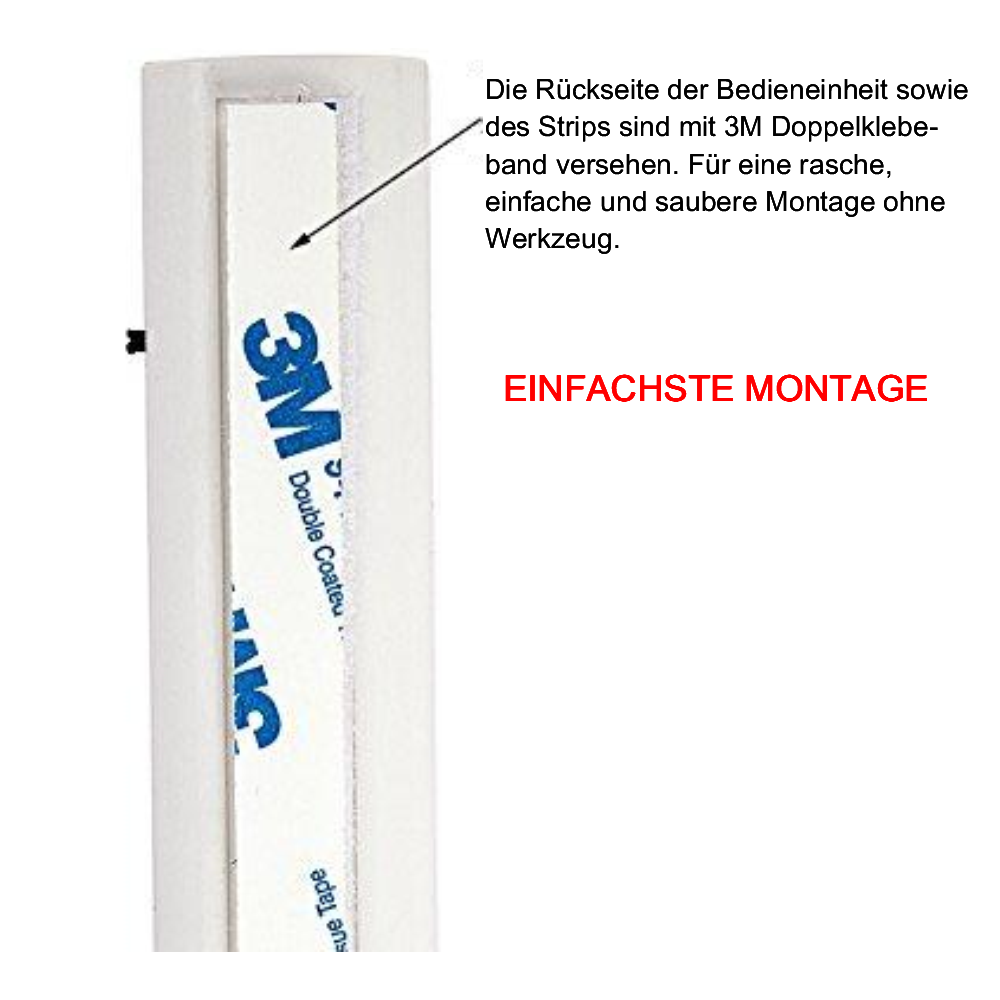 Masse: 100cm LED Strip inkl. Bedieneinheit mit 3M-Doppelklebeband an der Rückseite zur Montage