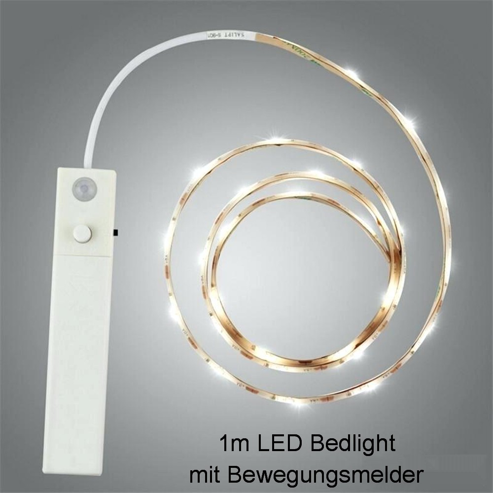 Dies ist die ideale Lösung, um nachts gefahrenlos aufzustehen. Sobald Ihre Füsse den Boden berühren, geht das BEDLIGHT automatisch an, so dass Sie gefahrenlos aufstehen können. Die Montage ist dank dem vormontierten 3M-Doppelklebeband kinderleicht und sehr schnell. Das BEDLIGHT wird ganz einfach unter der Bettkante montiert. Am Bedienelement wählen Sie den gewünschten Modus. Sie haben die Möglichkeit zwischen "MAN" oder "AUTO". Der "MAN" (manuelle) Modus ermöglicht Ihnen das Ein/Aus-Schalten per Knopfdruck. Der "AUTO" (automatik) Modus aktiviert den Sensor. Somit schaltet sich das Licht bei Dunkelheit ein, sobald der Sensor eine Bewegung registriert. Die Brenndauer im Automatik-Betrieb beträgt 20 Sekunden je Schaltung. Die vernünftige Leuchtkraft ist ausreichend, so dass Sie keine weitere Lichtquelle benötigen. Dieses Produkt eignet sich besonders für ältere Personen, Kinder und all diejenigen, welche bei Dunkelheit etwas mehr Sicherheit benötigen. MIT KLEINEM AUFWAND - VIEL KOMFORT UND SICHERHEIT.