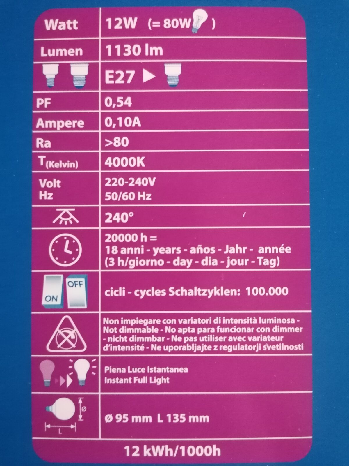 Leistungsaufnahme: 12Watt (=80W)
