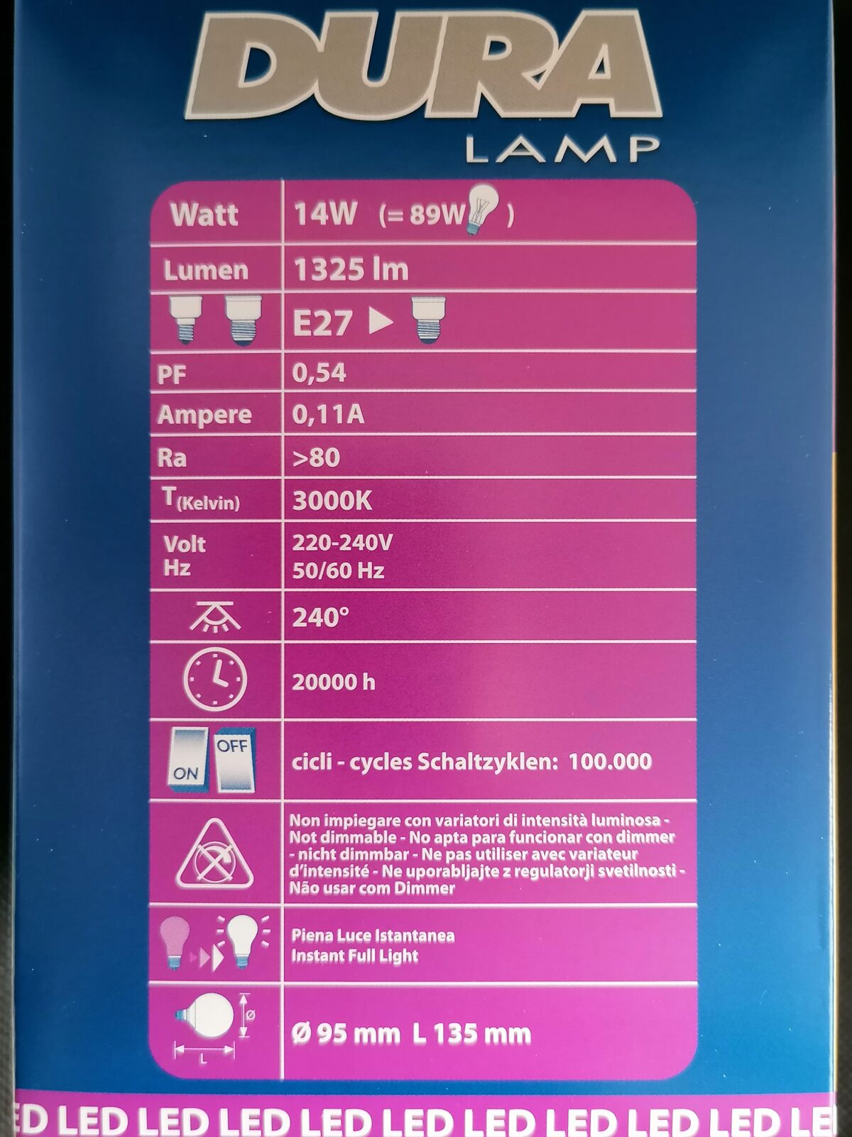 LED Globo 95mm 14W/E27/warm-white/1'325Lm