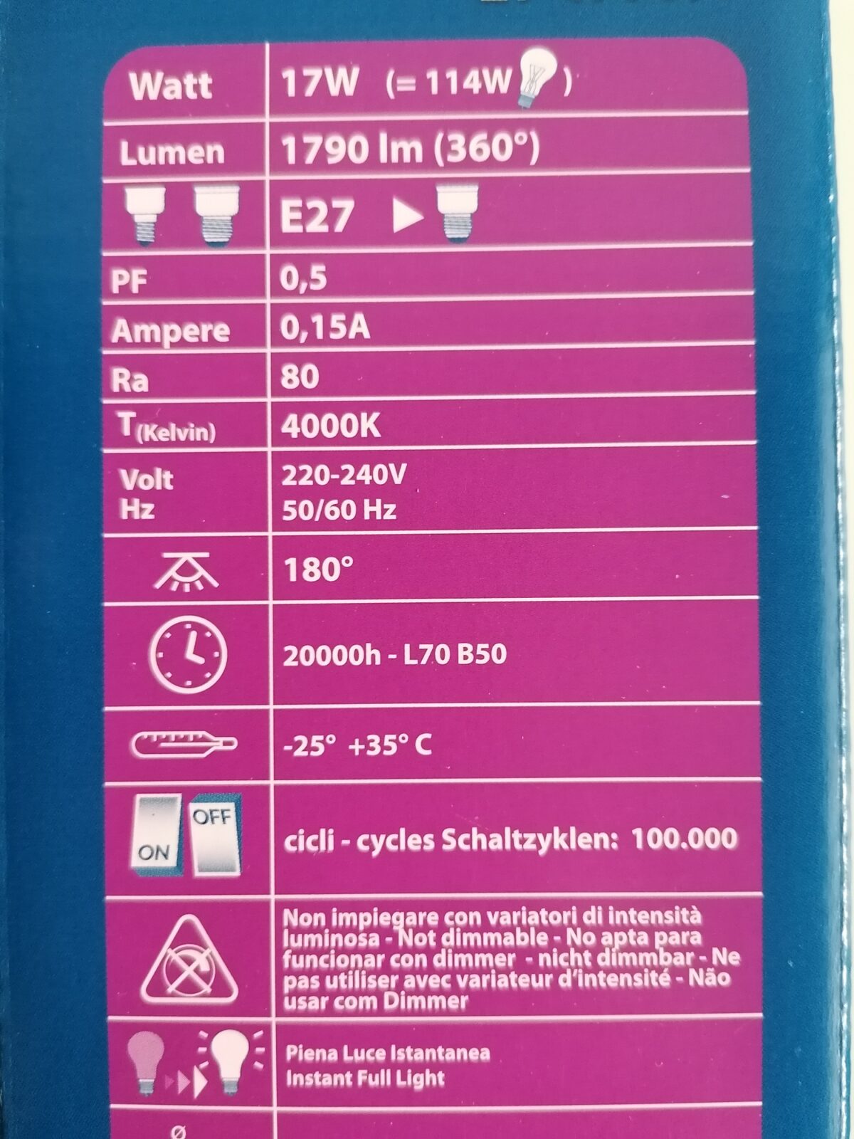 Leistungsaufnahme: 17Watt (=114W)