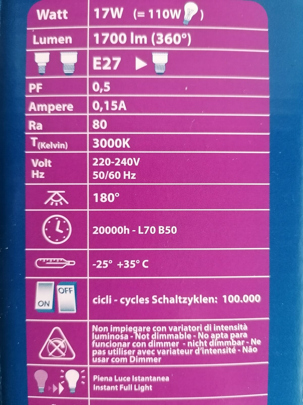 Leistungsaufnahme: 17Watt (=110W)